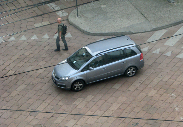 Our hotel is next to the tall building at the back of this photo, but I included the photo here because it shows a Sprinter delivery van from Daimler-Benz. When they owned Chrysler, they replaced the full-sized Dodge vans with these Sprinters in the American market. I see a few on the road, but in general this vans are too narrow and too tall for American tastes. Plumbers and repairmen like wider cargo areas for the wider roads here.